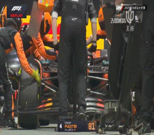 第27圈,諾里斯進站后維斯塔潘順利回到第2并獲得了近4秒的優(yōu)勢。隨后一圈,皮亞斯特里進站,右前和左后兩側(cè)輪胎在換胎時都出現(xiàn)了問題,導致皮亞斯特里進站耗時達到5.2秒。
