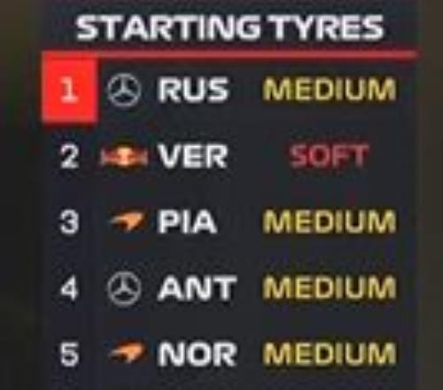 昨晚的排位賽無疑給全世界帶來了驚喜!拉塞爾獲得桿位,維斯塔潘緊隨其后同樣在頭排發(fā)車,皮亞斯特里第三位起步,而排在第四的是同樣來自梅奔車隊的“小kimi”安東內(nèi)利。而法拉利雙雄于第6和第7位起步,在他們身前是麥克拉倫的諾里斯。